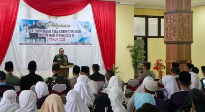 Kalabahi, FkkNews.com – Pemerintah Daerah Kabupaten Alor, Bupati Iskandar Lakamau, SH.MSi, Melepas Calon Jamaah Haji Asal Kabupaten Alor Musim Haji 1446 M tahun 2025 di lantai satu kantor bupati Alor Jumat (16/5/2025).