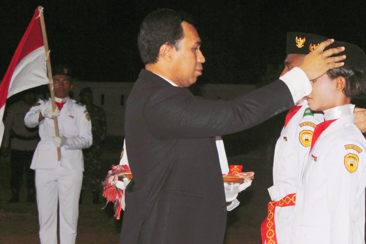 Dalam sambutannya, Bupati Krisman menyampaikan selamat kepada 45 putra-putri terbaik Kabupaten Sabu Raijua yang telah resmi menjadi anggota Paskibraka Tahun 2025. Ia menegaskan bahwa tugas mengibarkan dan menurunkan Duplikat Bendera Pusaka pada Upacara Peringatan Hari Ulang Tahun ke-80 Proklamasi Kemerdekaan Republik Indonesia merupakan amanah yang mulia sekaligus kebanggaan yang tidak semua generasi muda dapat peroleh.