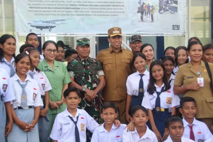 Seba, FKKNews.com – Bupati Sabu Raijua Krisman Riwu Kore menyambut kedatangan Danrem 161/WS, Brigjen TNI Jao Xavier Barreto Nunes, SE.,MM, Dandim 1604 Kupang, Letkol Inf. Kadek Abriawan,S.I.P.,M.H.I beserta Ibu Ketua Persit Kartika Candra Kirana Korcab Rem 161 PD IX/Udayana, Ny. Paula Luis De Assis Nunes, S.IP (Ibu Danrem), Ibu Ketua Persit KCK Cabang XV, Ny. Luh Putu Mini Hartati (Ibu Dandim) di Kabupaten Sabu Raijua di Bandara Udara Terdamu Seba, Selasa (11/3/2025).