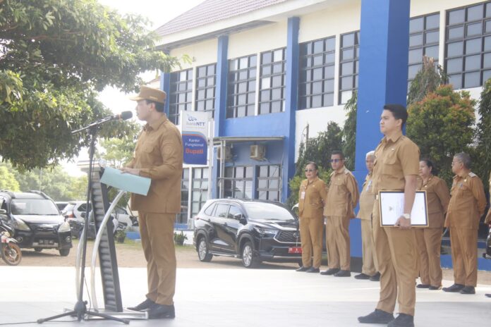 Seba, FKKNews.com – Bupati Sabu Raijua, Krisman B. Riwu Kore, S.E., M.M., memimpin langsung pelaksanaan Apel Kekuatan yang berlangsung di halaman depan Kantor Bupati Sabu Raijua. Apel tersebut diikuti Wakil Bupati Sabu Raijua, Sekretaris Daerah, Staf Ahli Bupati, para Asisten Sekda, pimpinan OPD, pejabat administrator dan pengawas, pejabat fungsional tertentu, serta seluruh Aparatur Sipil Negara (ASN) lingkup Pemerintah Kabupaten Sabu Raijua.