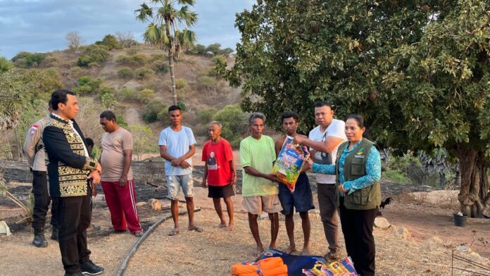 Menia, FKKNews.com – Bupati Sabu Raijua Krisman Riwu Kore yang di dampingi Kadis Sosial sekaligus Plt. Kalak BPBD Sabu Raijua merespon cepat dalam penanganan musibah Korban kebakaran rumah di Desa Ledeke.