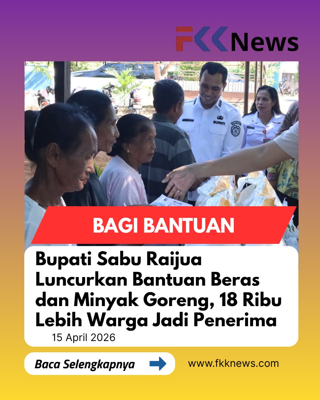“Bantuan ini untuk meringankan beban, bukan menggantikan tanggung jawab keluarga. Gunakan dengan baik dan penuh rasa syukur,” pesannya.