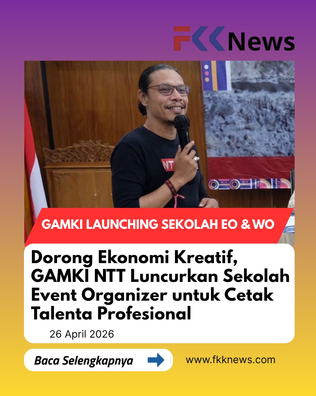 Ia menilai, selama ini potensi anak muda NTT belum bertemu dengan sistem pembelajaran yang tepat. Padahal, di era ekonomi kreator, kemampuan menciptakan event bukan lagi pilihan tambahan, tetapi peluang utama.