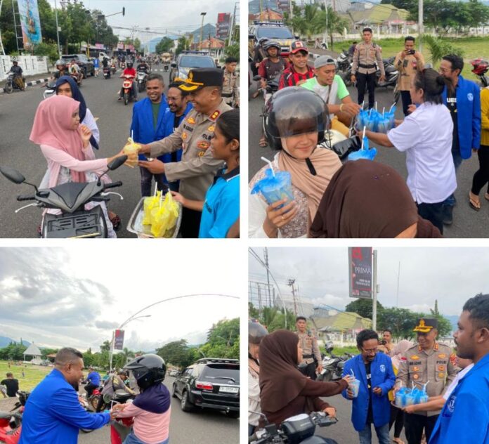 Terlihat suasana hangat penuh kebersamaan terasa di Lapangan Mini Kalabahi, Kelurahan Kalabahi Kota, Kecamatan Teluk Mutiara, Dalam rangka menyemarakkan kebaikan di Bulan Suci Ramadhan 1447 Hijriah, Kapolres Alor AKBP Nur Azhari, SH bersama Gerakan Angkatan Muda Kristen Indonesia (GAMKI) Kabupaten Alor pembagian takjil kepada masyarakat.