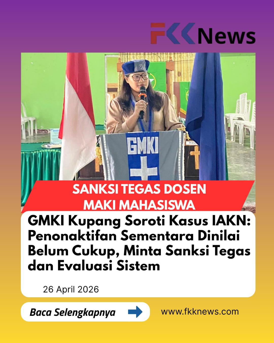 Kupang, FKKNews.com – Gerakan Mahasiswa Kristen Indonesia (GMKI) Cabang Kupang menilai langkah Institut Agama Kristen Negeri (IAKN) Kupang yang menonaktifkan sementara dosen berinisial JS sebagai respons awal yang patut diapresiasi. Namun, keputusan tersebut dianggap belum cukup untuk menjawab rasa keadilan publik dan memulihkan marwah akademik secara menyeluruh.