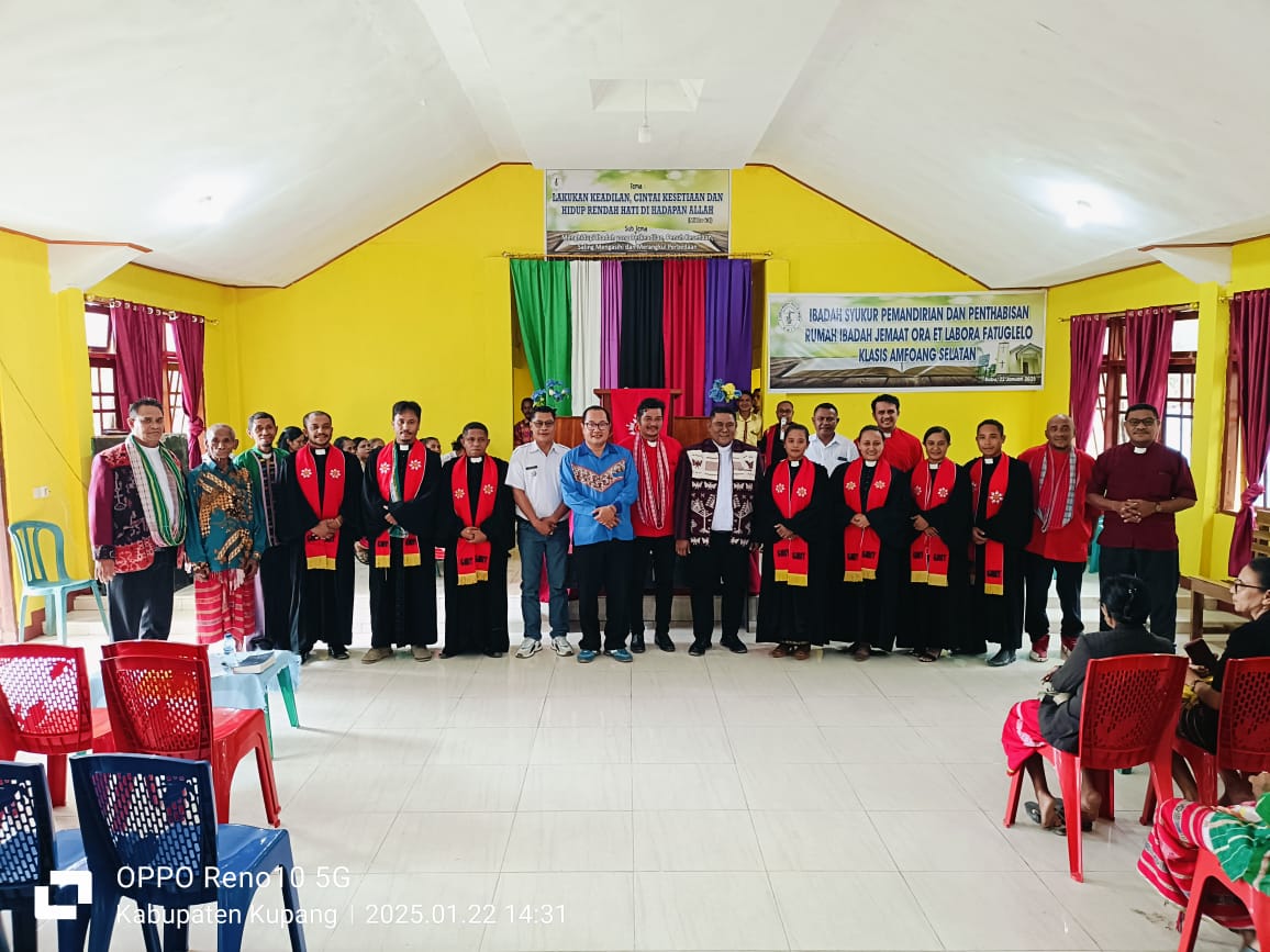 Oelamasi, FKKNews.com – Ketua Mejelis Sinode Harian GMIT Pendeta Samuel Pandie, Ketua Majelis Klasis Amfoang Selatan, Plt Camat Amfoang Selatan dan Wakil Ketua Komisi V DPRD NTT Winston Rondo menghadiri kegiatan Pemandirian dan Penthabisan rumah Ibadat Jemaat GMIT, Ora Et Labora Fatugelo, Klasis Amfoang Selatan, Rabu (22/1/2025).