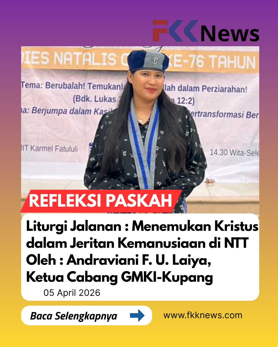 Marilah kita jadikan Paskah ini sebagai titik balik, titik di mana GMKI Kupang memperbarui komitmennya untuk berziarah bersama pergumulan milik sesama yang paling lemah, paling terpinggirkan, dan paling tidak terdengar di bumi Flobamora ini. Karena di sanalah altar perjumpaan kita dengan Allah.
