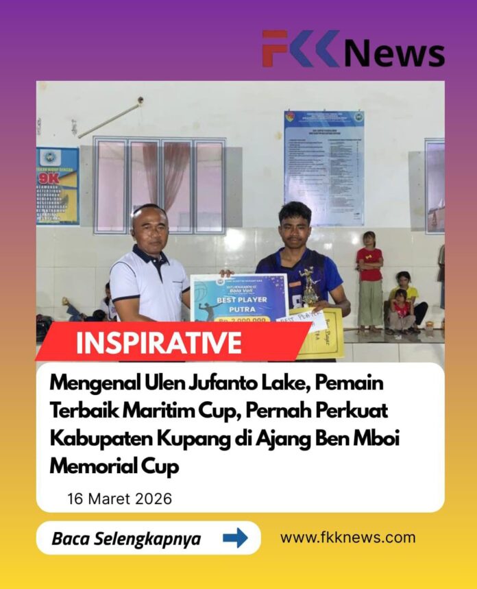 Oelamasi, FKKNews.com – Nama Ulen Jufanto Lake kini menjadi perbincangan di kalangan pecinta bola voli pelajar di Daratan Timor. Siswa kelas IX SMP Negeri 1 Fatuleu Tengah ini tampil gemilang dengan meraih gelar Pemain Voli Putra Terbaik pada turnamen Maritim Cup I yang digelar di SMK Maritim Nusantara Kupang.