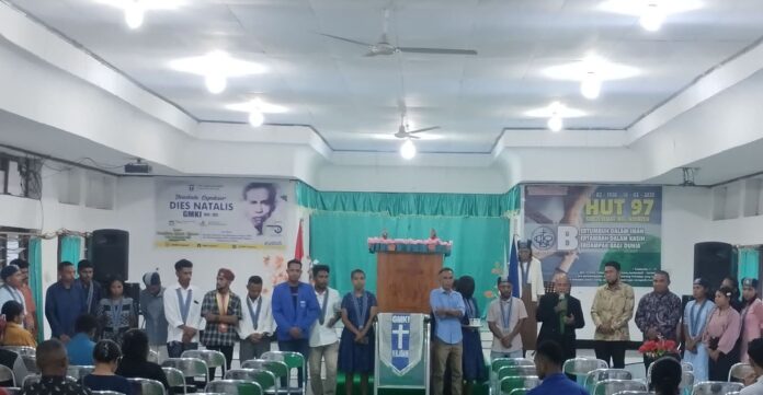 Ketua Cabang Gerakan Mahasiswa Kristen Indonesia Kalabahi, Ardi Bersos Manilehi Kemudian Membacakan Dengan Tegas dan Suara Yang Lantang Berkobarkan Semangat Juang PIDATO MONUMENTAL PADA SAAT PEMBENTUKAN GMKI (Dr. Johanis Leimena, 09 Februari 1950)