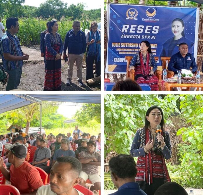 Kalabahi, FkkNews.com – Anggota DPR RI dari Fraksi Partai NasDem, Julie Sutrisno Laiskodat melakukan kunjungan ke Kabupaten Alor Provinsi Nusa Tenggara Timur (NTT). Julie Laiskodat berada di Nusa Kenari selama 9 hari kedepan yakni tanggal 25 Februari sampai 4 Maret 2026, dalam rangka reses atau jaring aspirasi masyarakat di daerah pemilihannya yaitu dapil NTT 1.