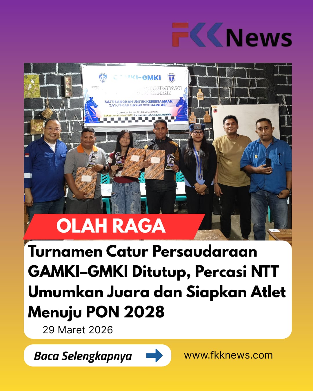 Penutupan kegiatan berlangsung di Rumah Orela, Sekretariat DPD GAMKI NTT, Sabtu (28/3/2026), dengan dihadiri jajaran pengurus GAMKI, GMKI, serta perwakilan Persatuan Catur Seluruh Indonesia (Percasi) NTT.