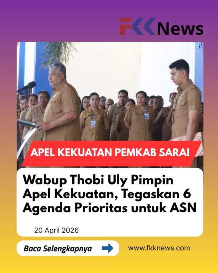 Seba, FKKNews.com – Wakil Bupati Sabu Raijua, Ir. Thobias Uly, M.Si., memimpin langsung Apel Kekuatan Lingkup Pemerintah Kabupaten Sabu Raijua yang berlangsung di Lobi Kantor Bupati, Senin (20/4/2026). Apel ini diikuti Sekretaris Daerah, staf ahli, pimpinan OPD, pejabat administrator, pengawas, fungsional, serta seluruh ASN.