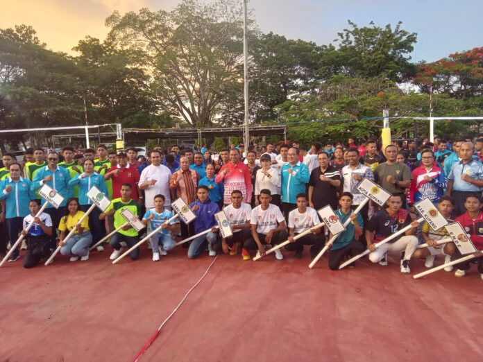 Kupang, FKKNews.com – Turnamen Voli Ben Mboi Memorial Cup Tahun 2025 resmi dibuka di lapangan outdor GOR Oepoi Kota Kupang, hadir dalam kegiatan tersebut Wakil Gubernur NTT Johni Asadoma, Ketua Umum Koni NTT Josef Nae Soi, Ketua Umum Pengprov PBVSI NTT Winston Rondo dan jajaran, Bupati SBD Ratu Wulla, Forkopimda tingkat Provinsi dan Kota Kupang, Perwakilan Pengkab PBVSI Kota/Kabupaten, serta para atlet dari berbagai daerah, Kamis (4/12/2025).
