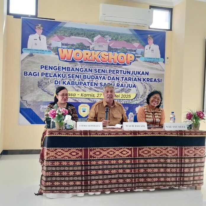 Menia, FKKNews.com – Wakil Bupati Sabu Raijua, Ir. Thobias Uly, M.Si, secara resmi membuka kegiatan Workshop Pengembangan Seni Pertunjukan bagi Pelaku Seni Budaya dan Tarian Kreasi yang digelar di Aula Taman Doa Skeber Lantai 2, Desa Raeloro, Kecamatan Sabu Barat, Selasa (27/5/2025).