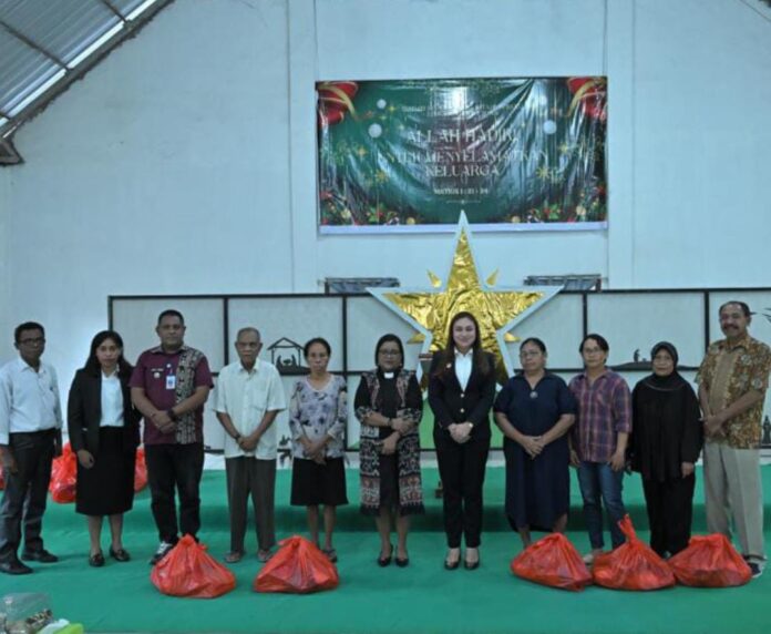 Pada kesempatan tersebut, Wakil Wali Kota Kupang yang dikenal dekat dengan anak muda ini menyerahkan bingkisan Natal kepada 20 orang jemaat penerima sebagai wujud perhatian dan kepedulian Pemerintah Kota Kupang terhadap warga yang membutuhkan.