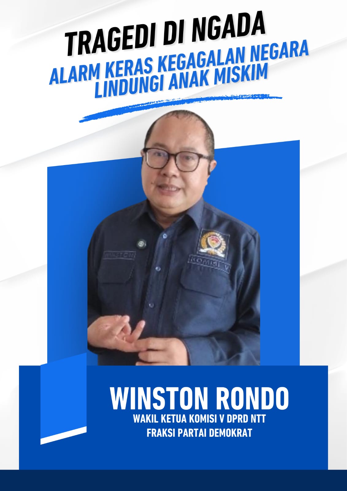 Menurut Winston, ketika seorang anak sekolah dasar memilih mengakhiri hidup karena merasa menjadi beban lantaran tidak memiliki buku dan alat tulis, maka persoalan tersebut telah melampaui ranah keluarga. “Ini adalah tanda runtuhnya sistem perlindungan anak. Negara gagal hadir pada kebutuhan paling mendasar seorang anak,” tegasnya.